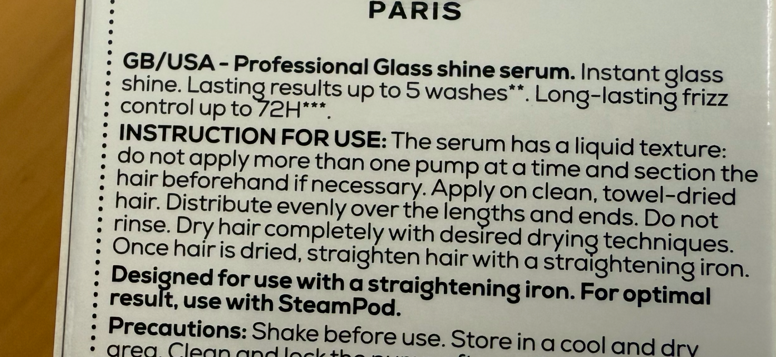 Packaging for a hair product: a white box with black text detailing instructions for use.